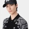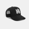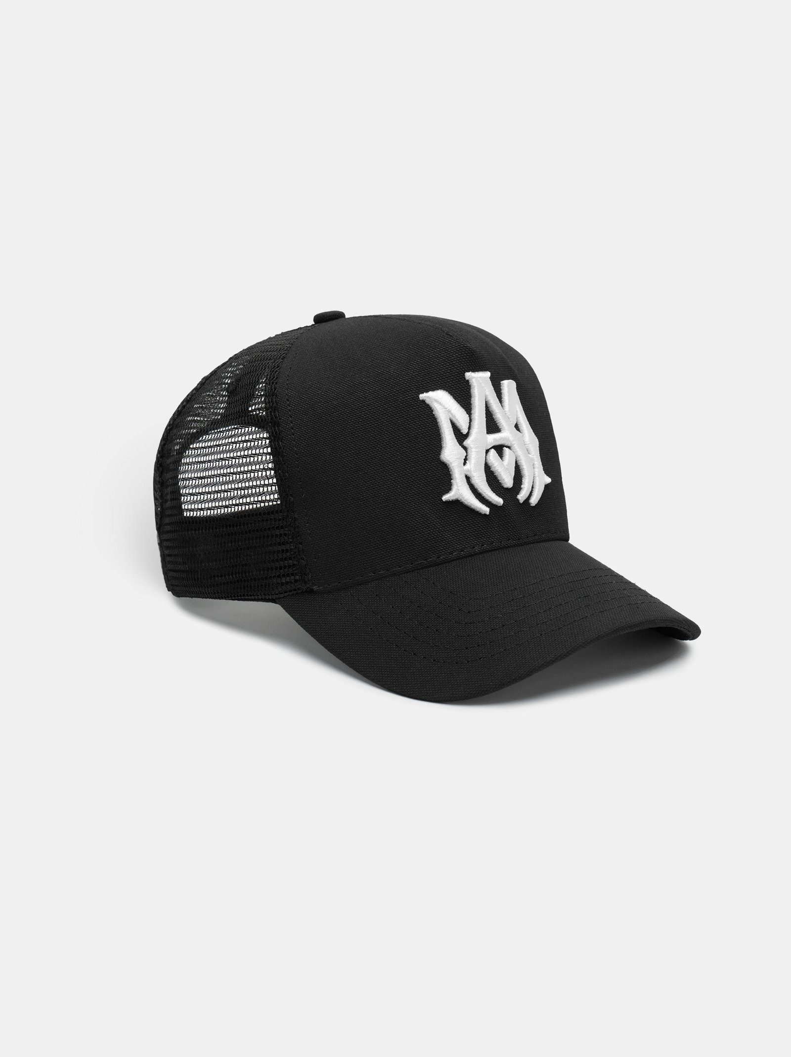 House signature graphics illustrate accessories for easy outfitting. The canvas and mesh MA Logo Trucker Hat is embroidered with the MA icon and finished with a curved brim, embroidered eyelets and double snapback fastening.