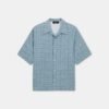 The house’s signature MA Quad monogram print illustrates foundational silhouettes for Spring-Summer 2026 menswear. The MA Quad Camp Shirt is designed in a relaxed fit and finished with a notched collar and button-down closure.