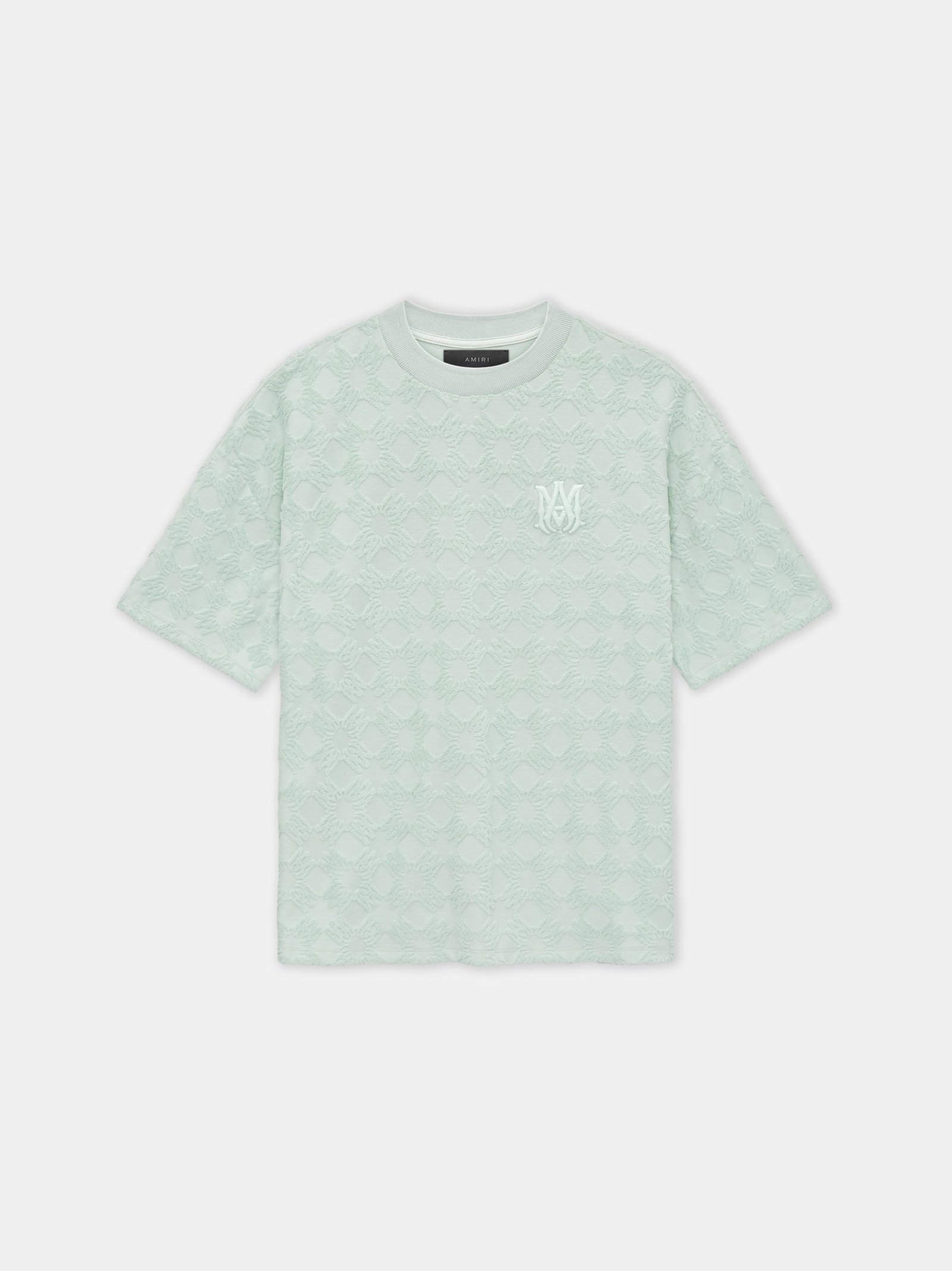 Signature house silhouettes are reimagined in novel fabrications for Spring-Summer 2025. The MA Quad Toweling Oversized Tee is designed in Italian knit jacquard toweling and finished with MA icon embroidery at chest.