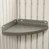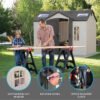 This Side 10 ft. W x 8 ft. D Steel-Reinforced Polyethylene Storage Shed will provide the perfect storage space for all your tools. It is the perfect addition to your outdoor space and it will keep your tools well-organized. It is constructed from steel and double-wall Steel-Reinforced Polyethylene that offers years of reliable use. The gable roof lends a traditional style to the garden shed. The desert tan and dark brown finish of the tool shed brings a classic look to it and it also enhances its overall appearance. It includes four small skylights, two large skylights, and two corner shelves. The screened vents will provide airflow and keep the shed pest-free. Its rear window can be kept open for extra ventilation. The two shatterproof poly-carbonate sides will allow light and air to come into the shed and maintain a fresh ambiance. The high-density and slip-resistant plastic floor will provide excellent stability and your tools will be easier to access.