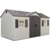 Shed TypeStorage ShedPrimary MaterialPlastic; MetalColorGray/BeigeFoundation RequiredYesFoundation IncludedNoRecommended Foundation Size178″ W x 93.5″ DFloor IncludedYesImpact Resistant FlooringYesFloor MaterialPlastic/PolyethyleneWindows IncludedYesNumber of Windows2Functional WindowsYesWindow Lock IncludedYesBuilt-In Shelving IncludedYesNumber of Shelves4Door Lock IncludedYesVentilation IncludedYesShingles IncludedNoShutters IncludedYesSkylight IncludedYesFlower Box IncludedNoDoor StyleDouble DoorWind Rating65Weather ResistantYesWater ResistantYesUV ResistantYesMildew ResistantYesSnow Load Capacity23 lb.Assembly