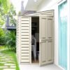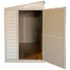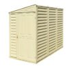 Transform a narrow side yard of your home into a protected storage space. The SideMate 4 ft. W x 8 ft. D Plastic Lean-To Storage Shed with the foundation is designed to sit adjacent to the side of the house or fence. The wide door can be reversed and set up on either side of the shed, while the generous gives you a large 154 cubic feet of storage space. All walls are reinforced with solid metal inserted in the columns, allowing you to easily hang shelves inside the shed. The vinyl SideMate is an ideal outdoor storage shed.
