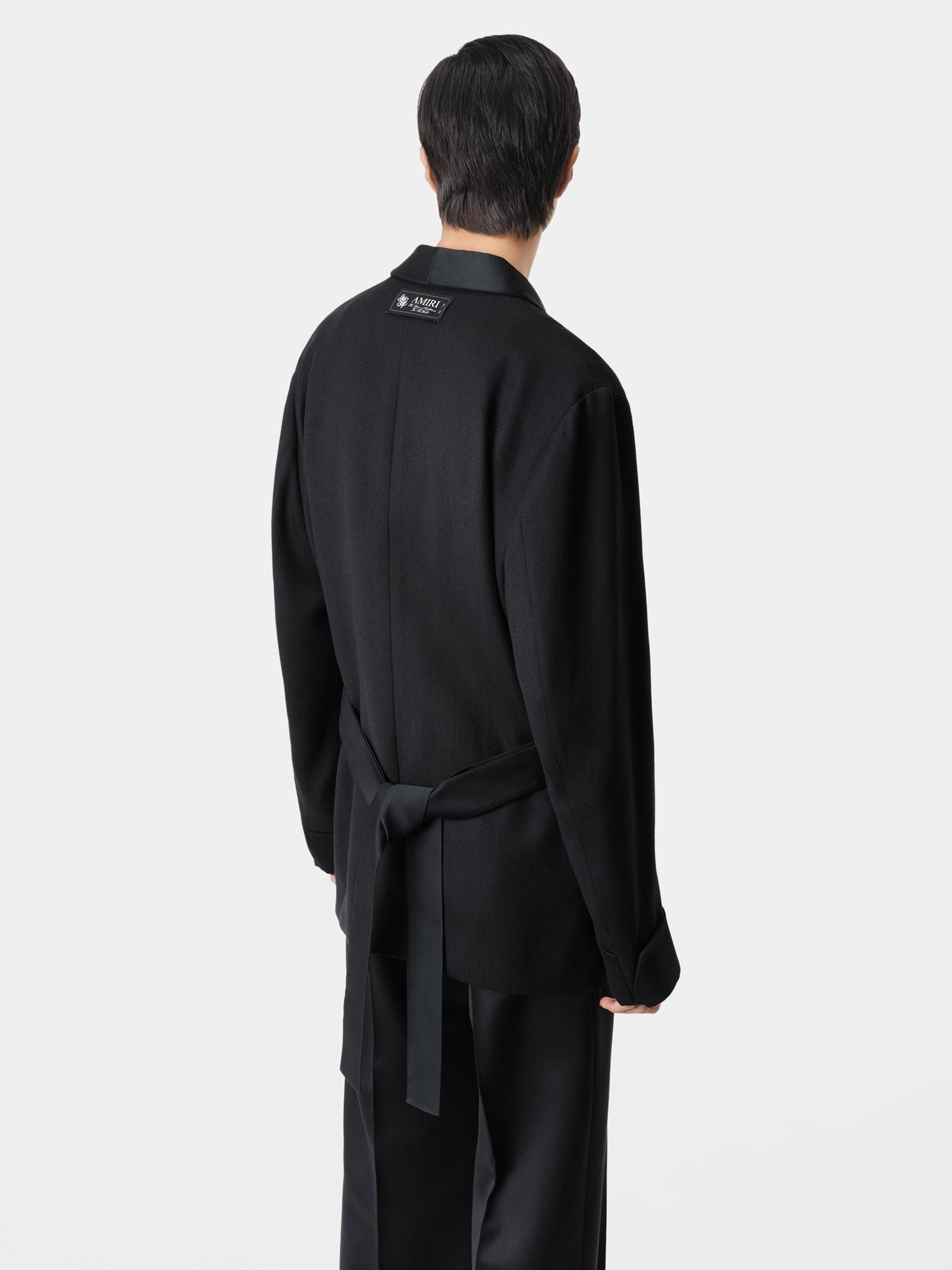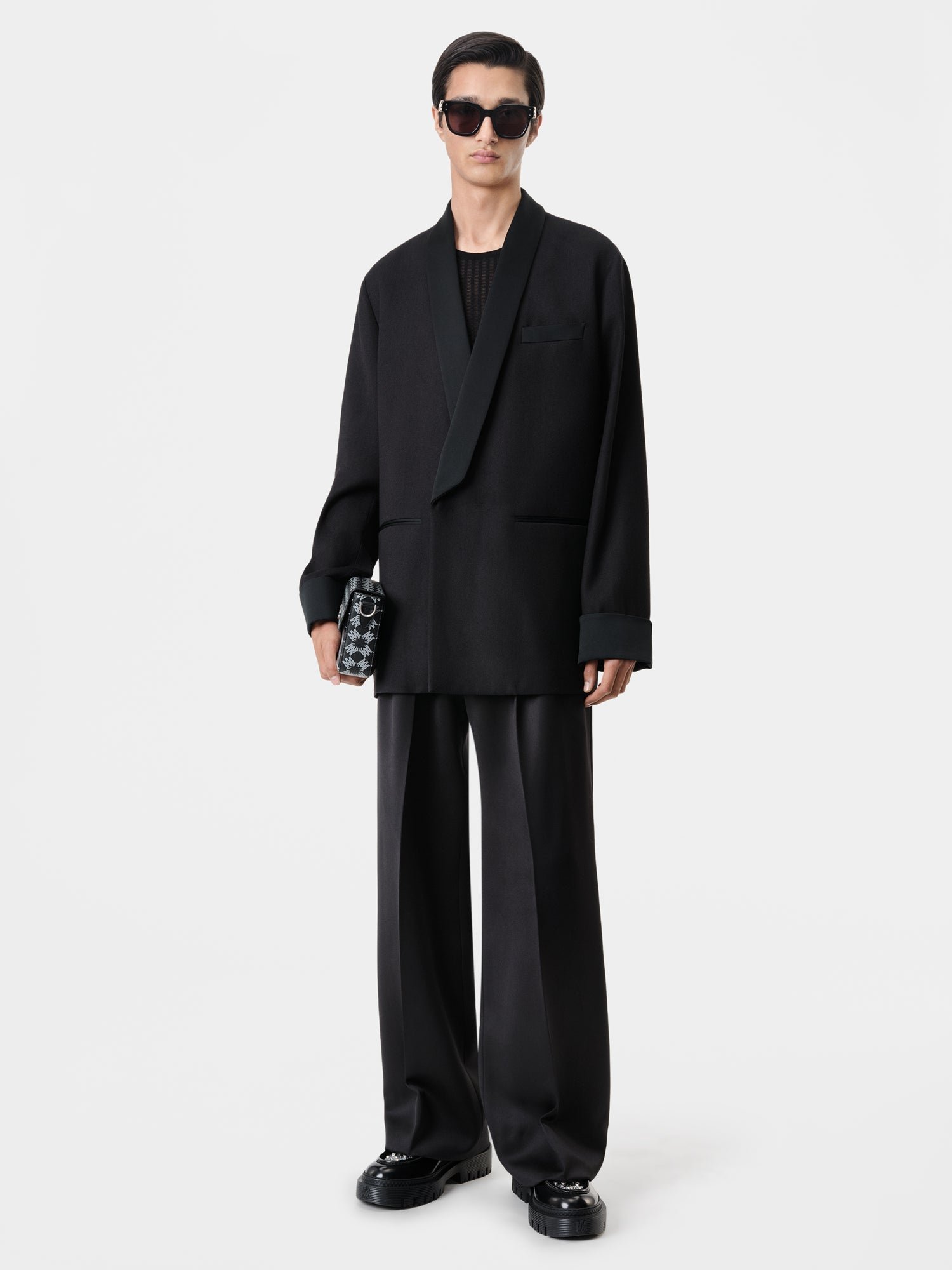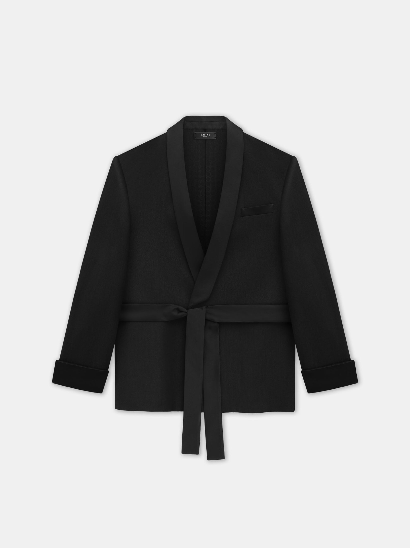 Autumn-Winter 2024 presents new silhouettes that translate mid-century suiting through the house’s distinctive point of view. The Smoking Jacket is crafted in custom-woven wool blend with welt pockets, self-tie waist, and concealed single-button closure.