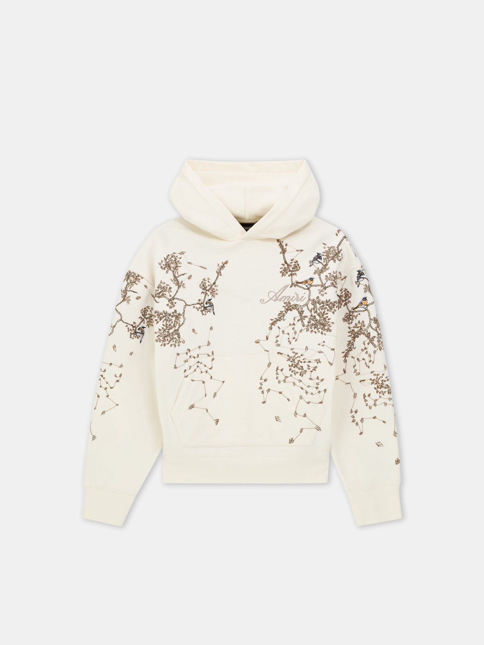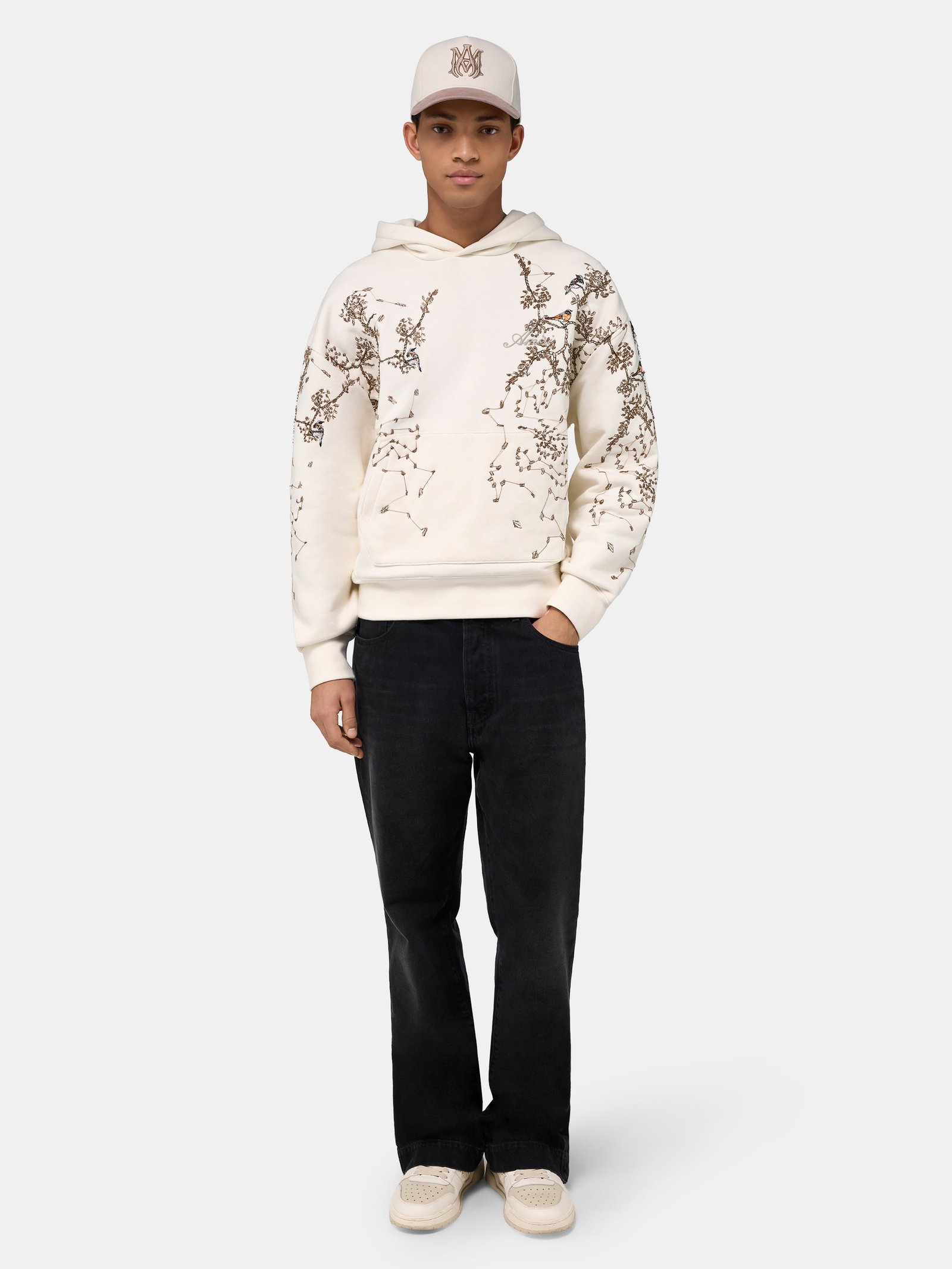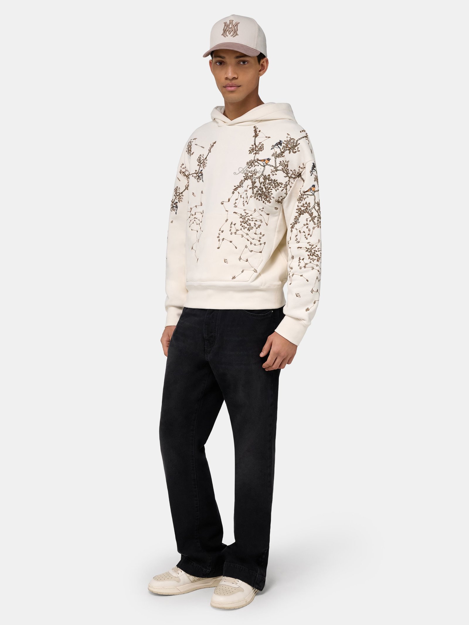 For Spring-Summer 2026, men’s jersey hoodies become a canvas for intricate fabrication processes that embody the house’s spirit of contemporary craft. The Sparrow Oversized Hoodie in cotton is illustrated with the season’s botanical and sparrow motifs in embroidery and beading.