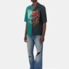 For Pre-Spring 2026, distressed motorcycle graphics are spliced together to form new identities. The Spliced Camp Shirt is illustrated with seasonal logo graphics and finished with a notched collar and button-down closure.