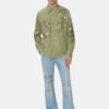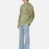 Spring-Summer 2026 menswear is made memorable through time-honored craftsmanship and seasonal visuals. The Suede Sparrow Long Sleeve Shirt is embroidered with botanical motifs and finished with a curved hem, button cuffs, and button-down closure.