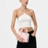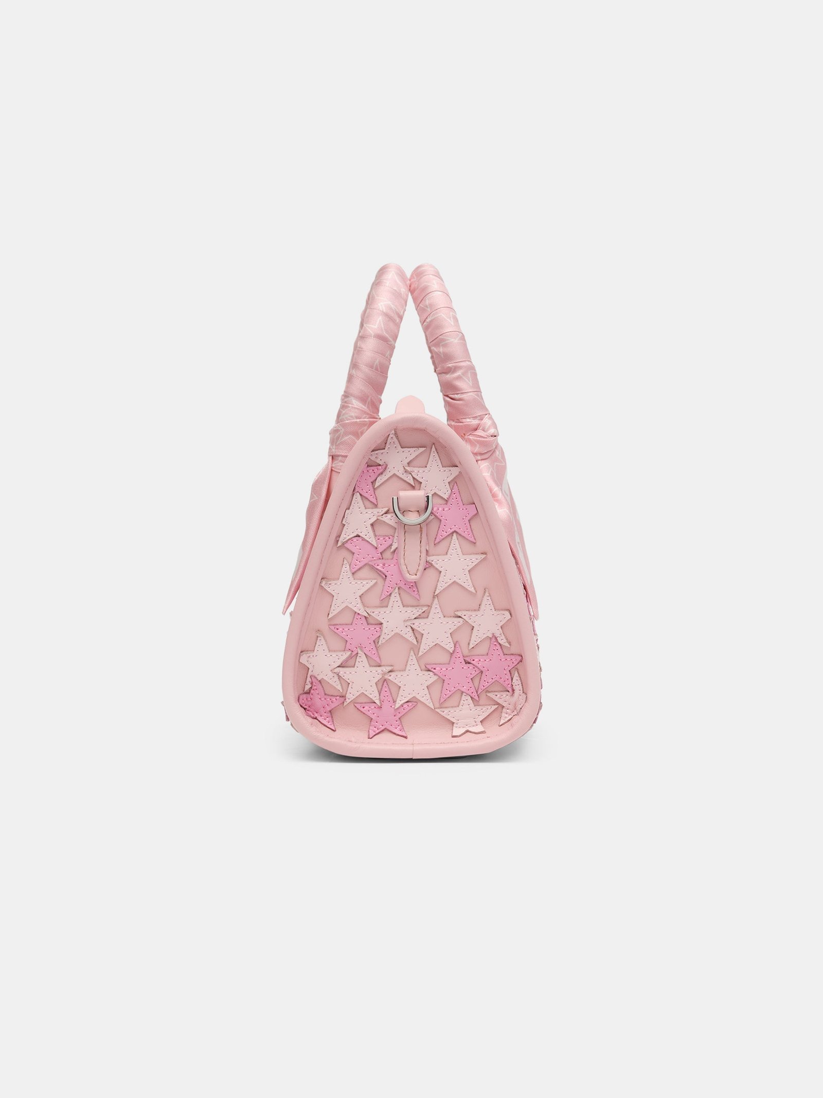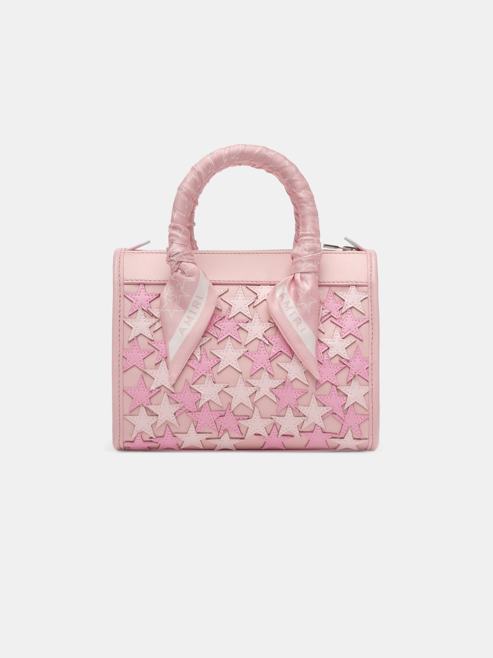 House signature motifs adorn iconic forms in new, seasonal fabrications for Pre-Fall 2024. The Stars Micro Triangle Bag is decorated with leather star appliqués and features top handles with tied star-patterned scarf accents and a detachable leather shoulder strap.