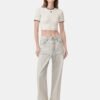 Pre-Fall 2025 reintroduces the house’s signature carpenter silhouette with newly magnified proportions. The Carpenter Jean is treated with super bleach processing and features front patches, a hammer loop, and custom MA hardware.