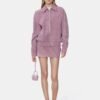 For Spring-Summer 2026, house outerwear silhouettes are made memorable in tactile croc-debossed suede. The Croc Suede Western Jacket is designed in a relaxed fit with an elastic waist and cuffs and zip closure with custom MA hardware.