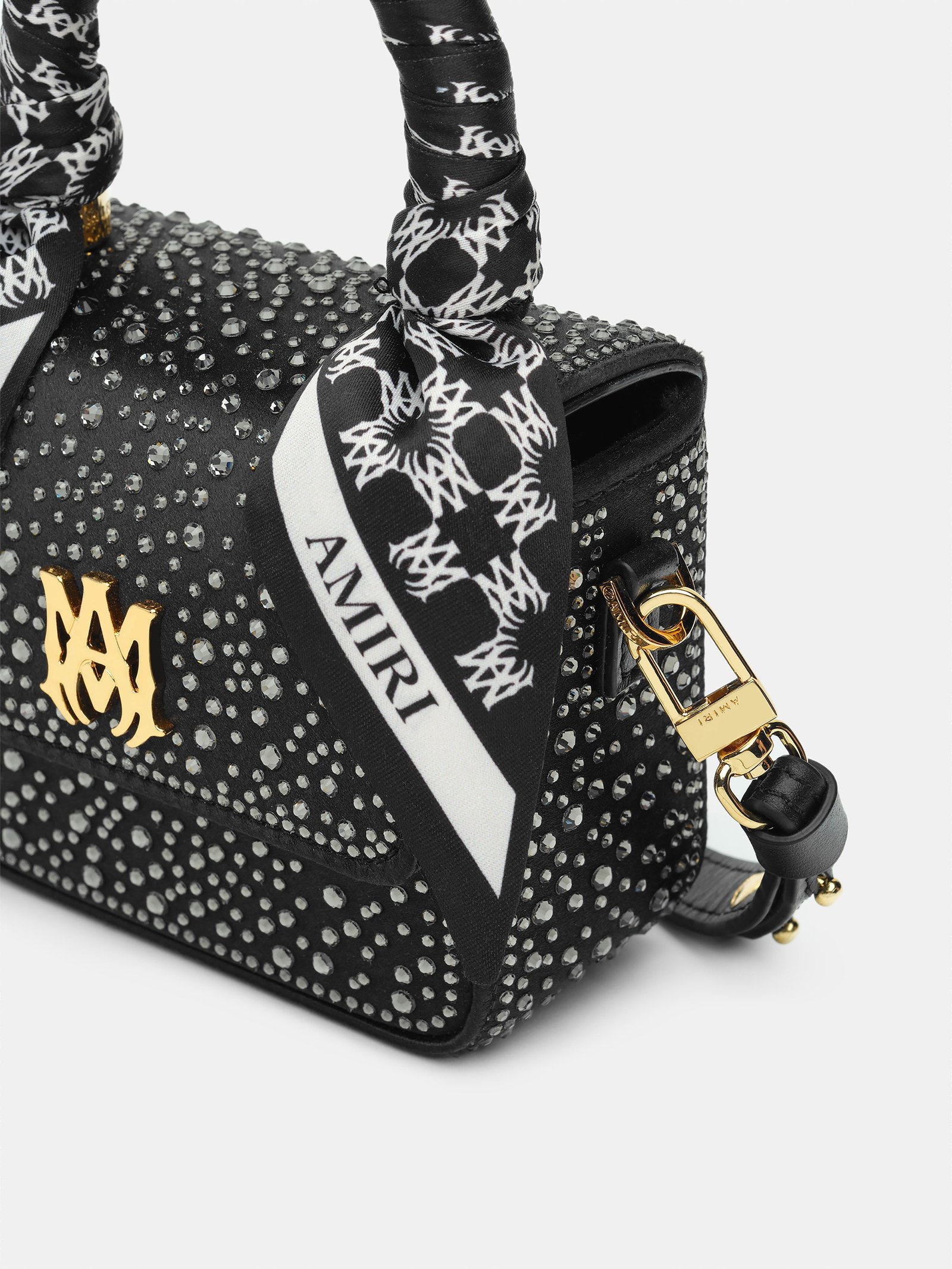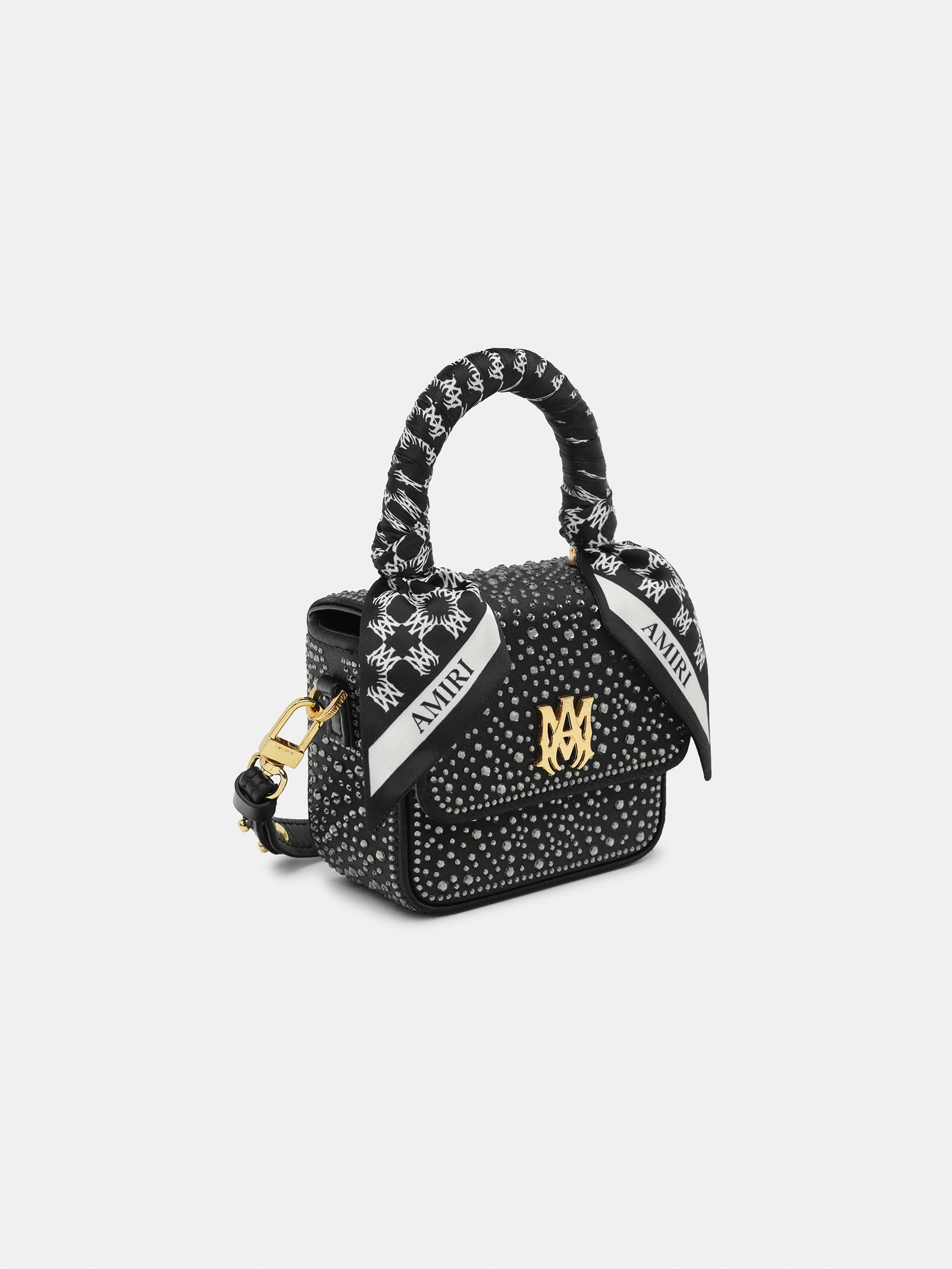 Pre-Fall 2025 reintroduces the Nano MA, a sized-down iteration of the signature Micro MA Bag. The Crystal Nano MA Bag is adorned with crystal embellishments and finished with chrome MA icon hardware, a top handle with tied MA Quad monogram print scarf accents, and a detachable shoulder strap.