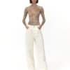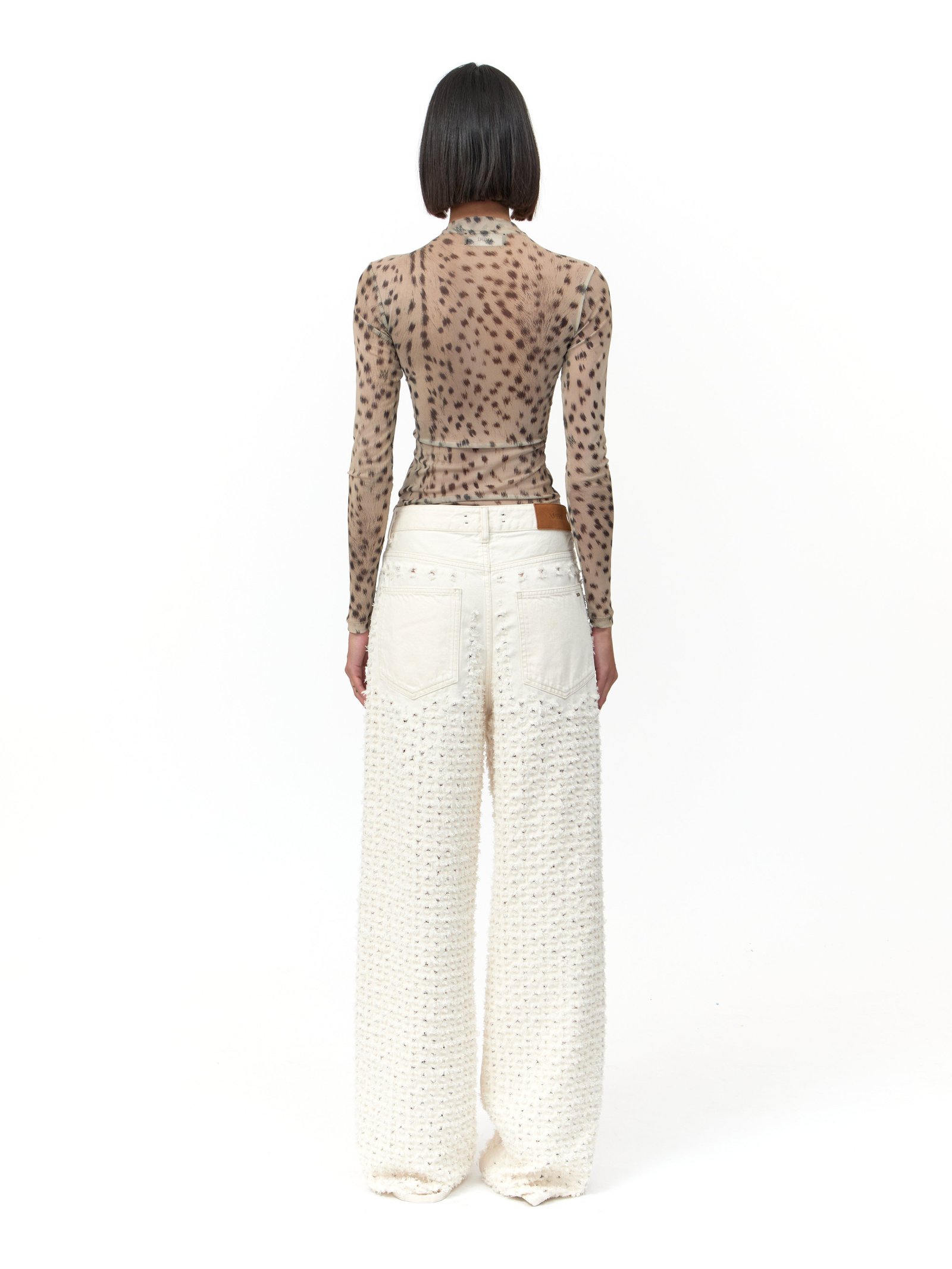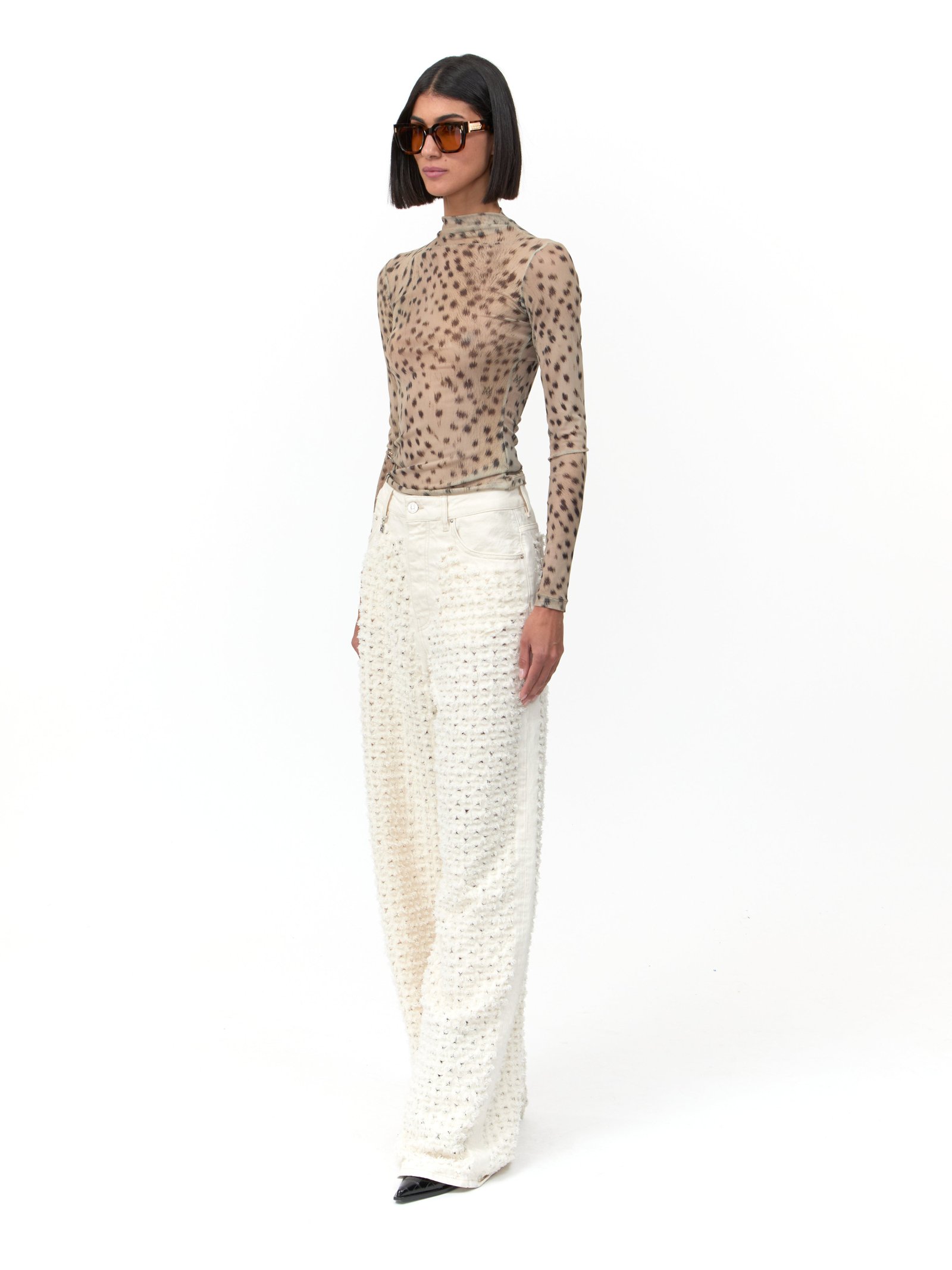 Pre-Spring 2026 womenswear introduces versatile silhouettes made memorable with printed deerhide. The Deer Long Sleeve Top is crafted in sheer mesh in a seasonal print illustrated with the MA icon.
