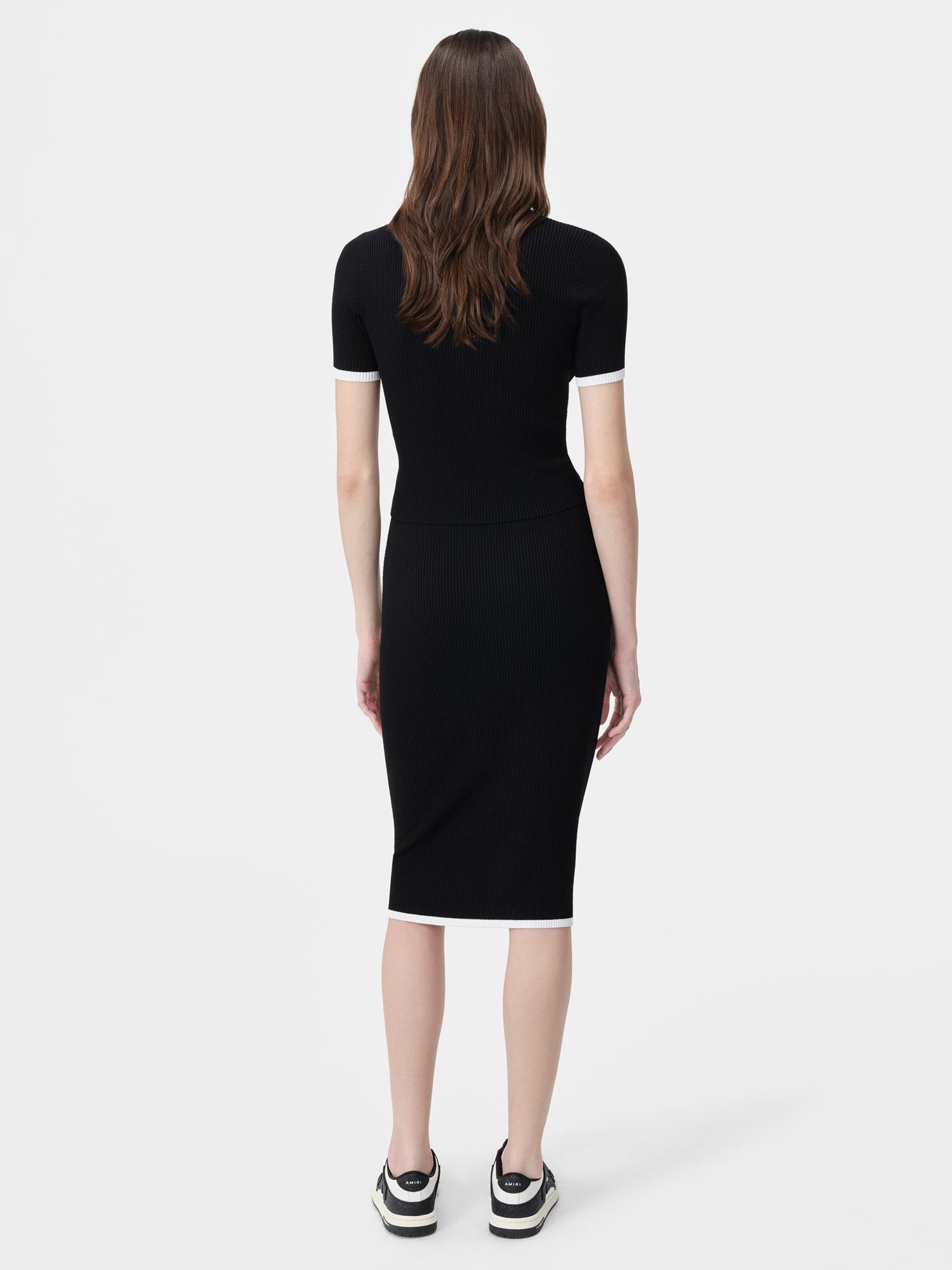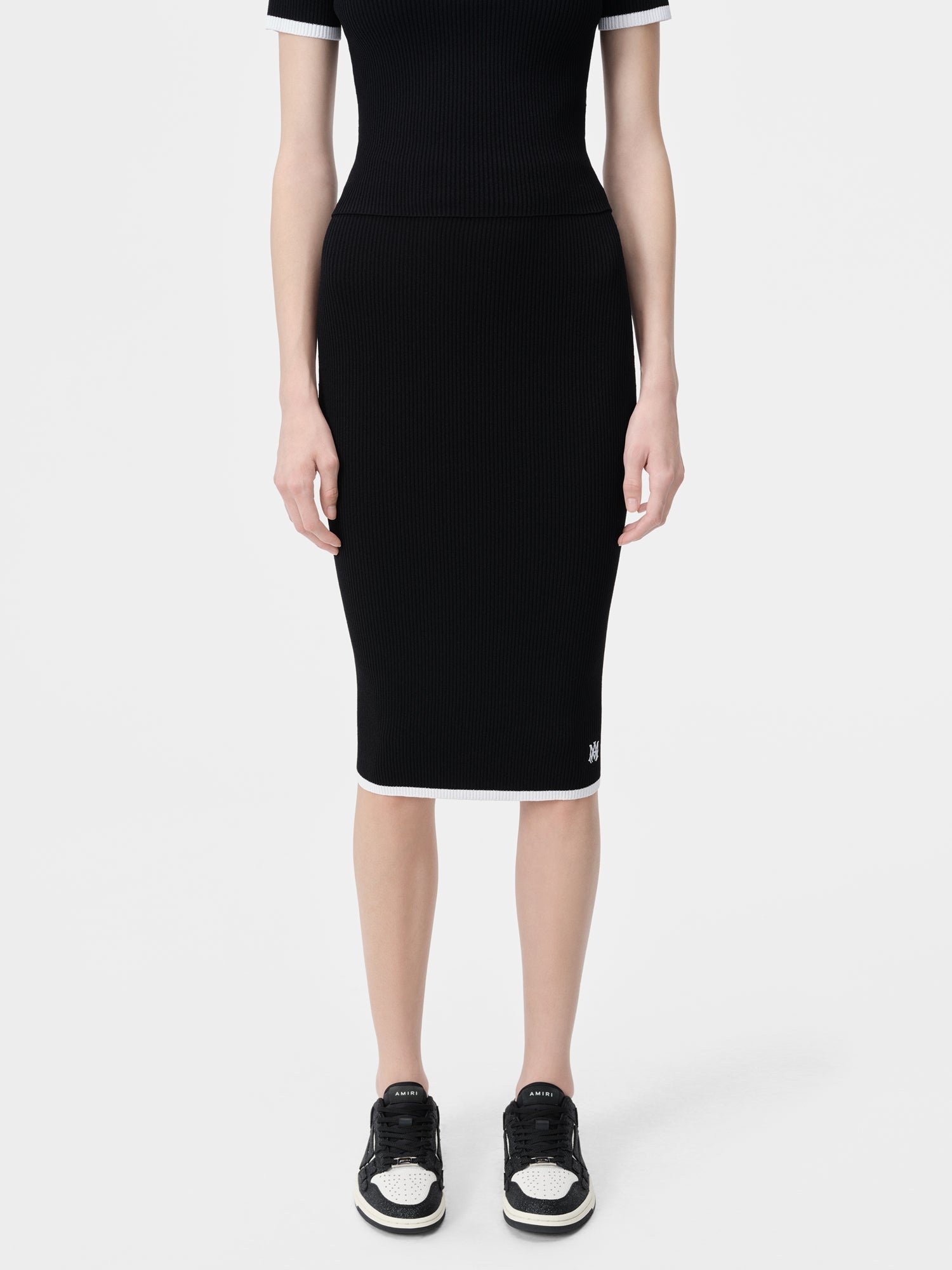 The Pre-Fall 2024 womenswear collection continues to explore house signature motifs in novel interpretations. The MA Midi Skirt is designed in a fine rib with contrast details and MA icon embroidery.