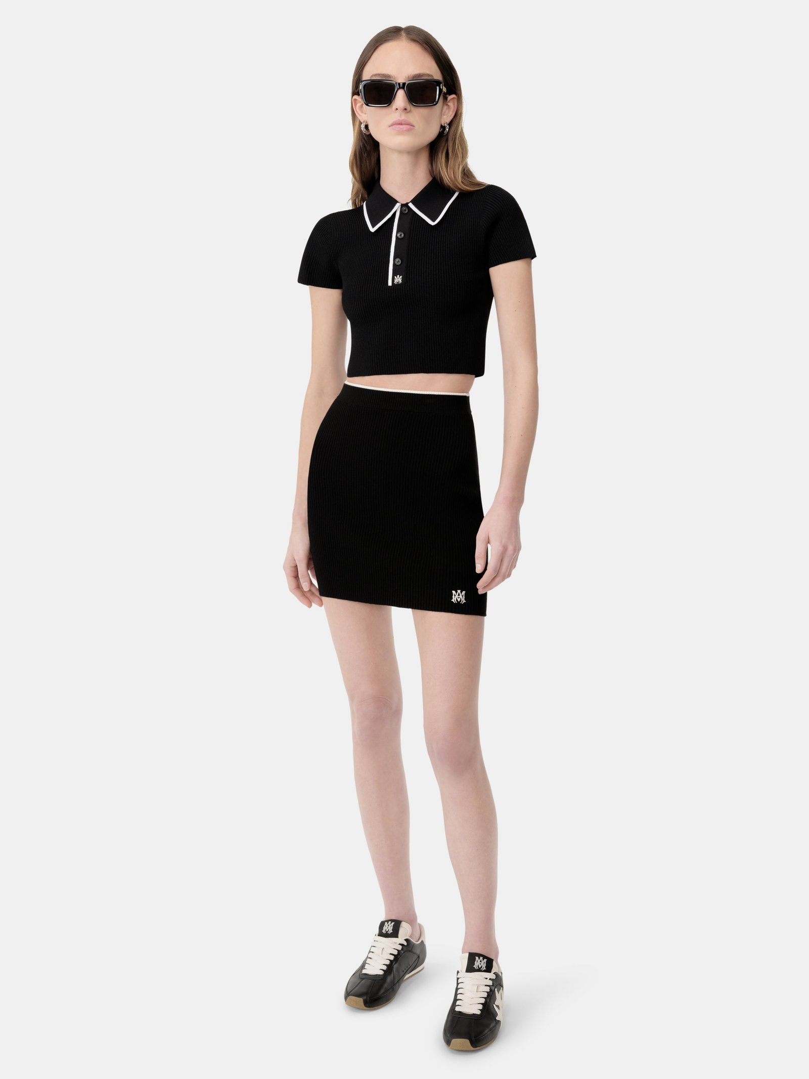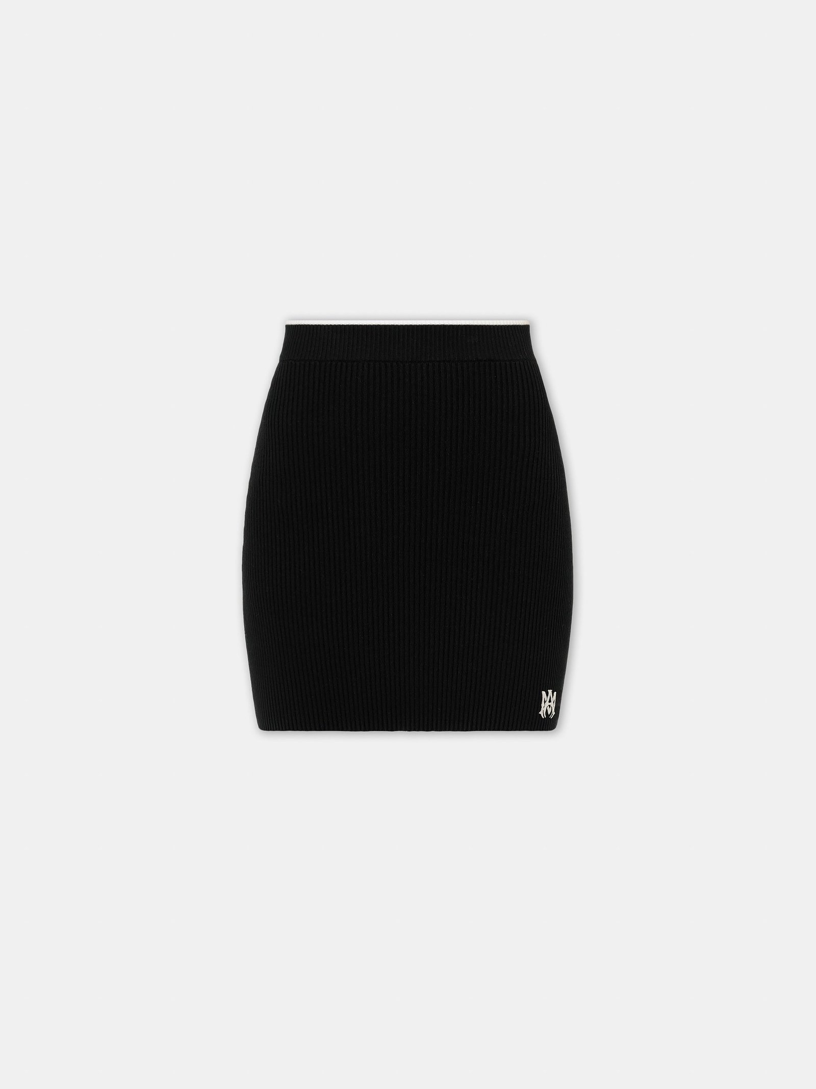 Pre-Fall 2025 women’s knitwear introduces versatile silhouettes enhanced by house iconography. The MA Mini Skirt is finished with banded rib accents and custom MA icon hardware.