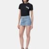 For Spring-Summer 2025 womenswear, denim becomes a canvas for intricate patterns and subtle fabrication processes. The MA Quad Jacquard Mini Skirt is designed in custom-woven jacquard denim with button closure and MA icon hardware.